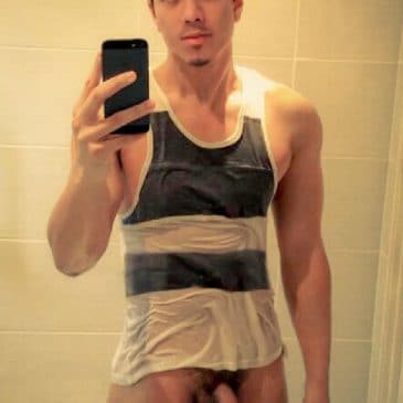 Very sexy asian guy wearing a wet singlet. Nice big uncut cock there